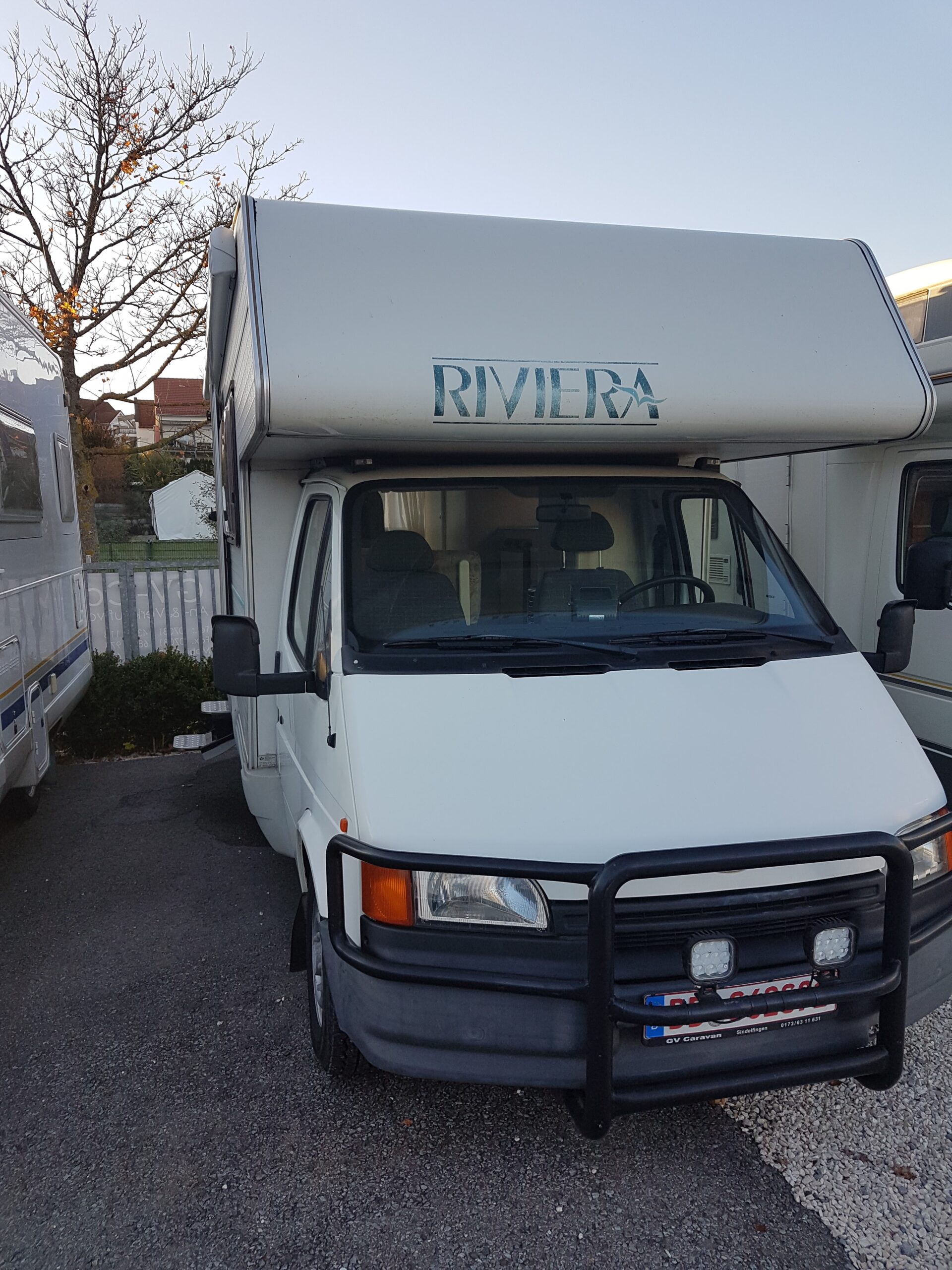 Ein Riviera Alkoven Mobil auf Ford Transit Basis, sehr wenig gelaufen, Traum Zustand, 5 Schlafplätze bei Bedarf, Sitzbank hinten mit 3 Punkt Gurten und das bei einem Händler in Sindelfingen. Gleich angerufen und nach der Arbeit hin.